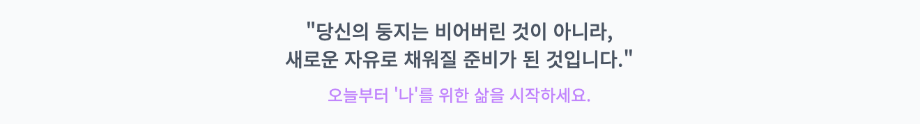 "당신의 둥지는 비어버린 것이 아니라, 새로운 자유로 채워질 준비가 된 것입니다."